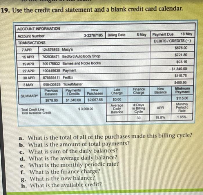 Solved 19 Use The Credit Card Statement And A Blank Credit Chegg Com